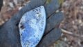 川を遡上しながら転石をみたり露頭の岩を叩いたりしてみましたが、···残念ながら金属なんて全然ない。パン皿でパンニングをしてみても砂鉄がチラホラで金はもちろん黄鉄鉱も全然無い。こりゃ今日は坊主かな?もう諦めて帰り道で日帰り温泉でも行こうかと思いながら川沿いを歩いて行く。川沿いを歩くと平坦に書きましたが、川は岩脈や凝灰岩がせり出しており砂礫が切れているところも多くて、結構大変でした。